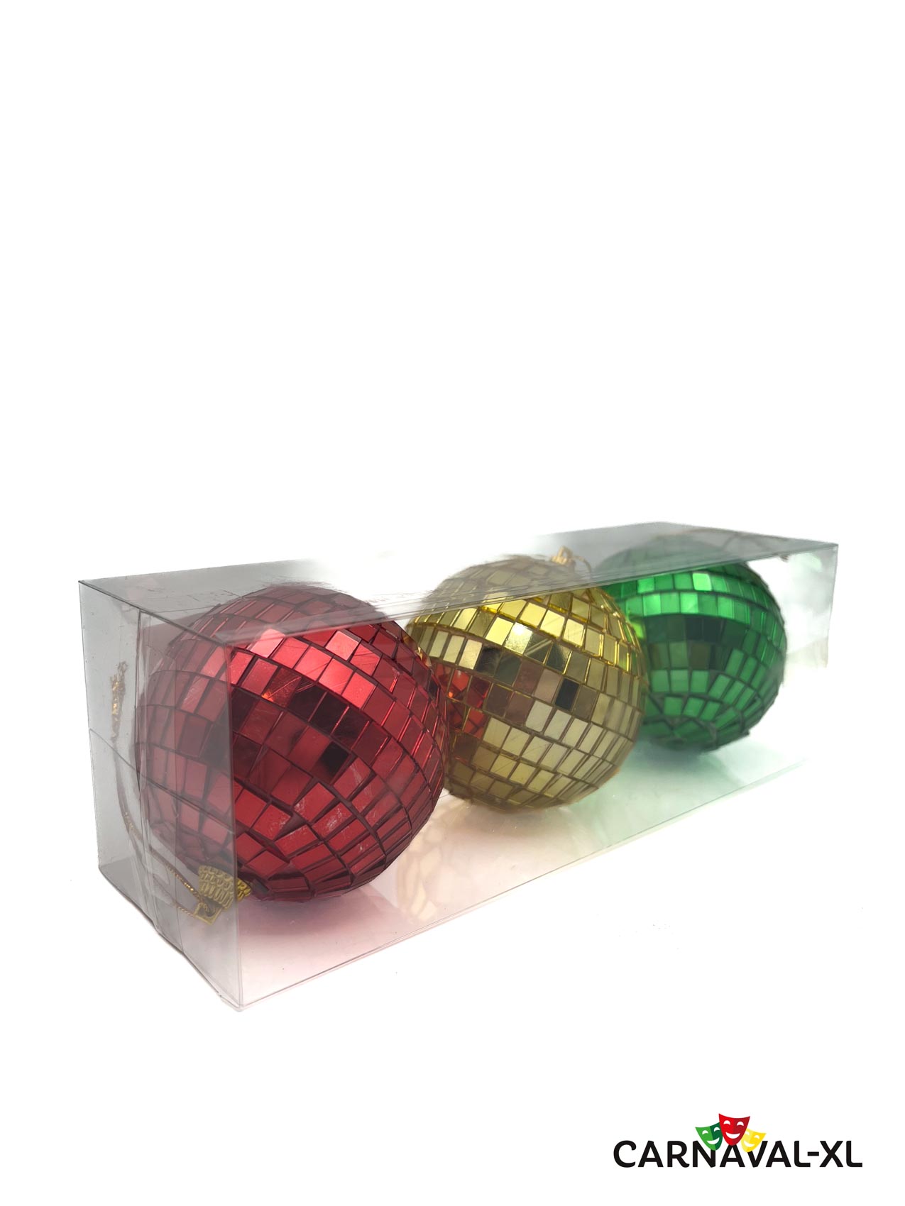 Spiegelballen rood-geel-groen 8cm 3 stuks