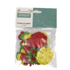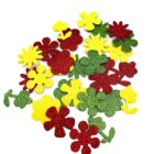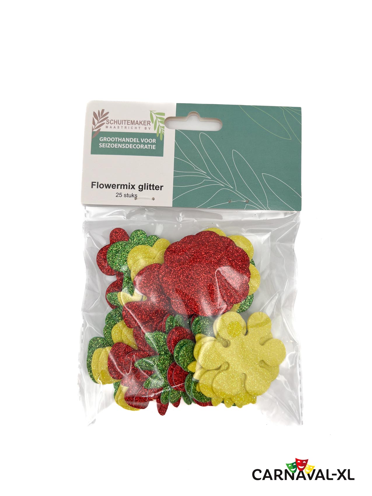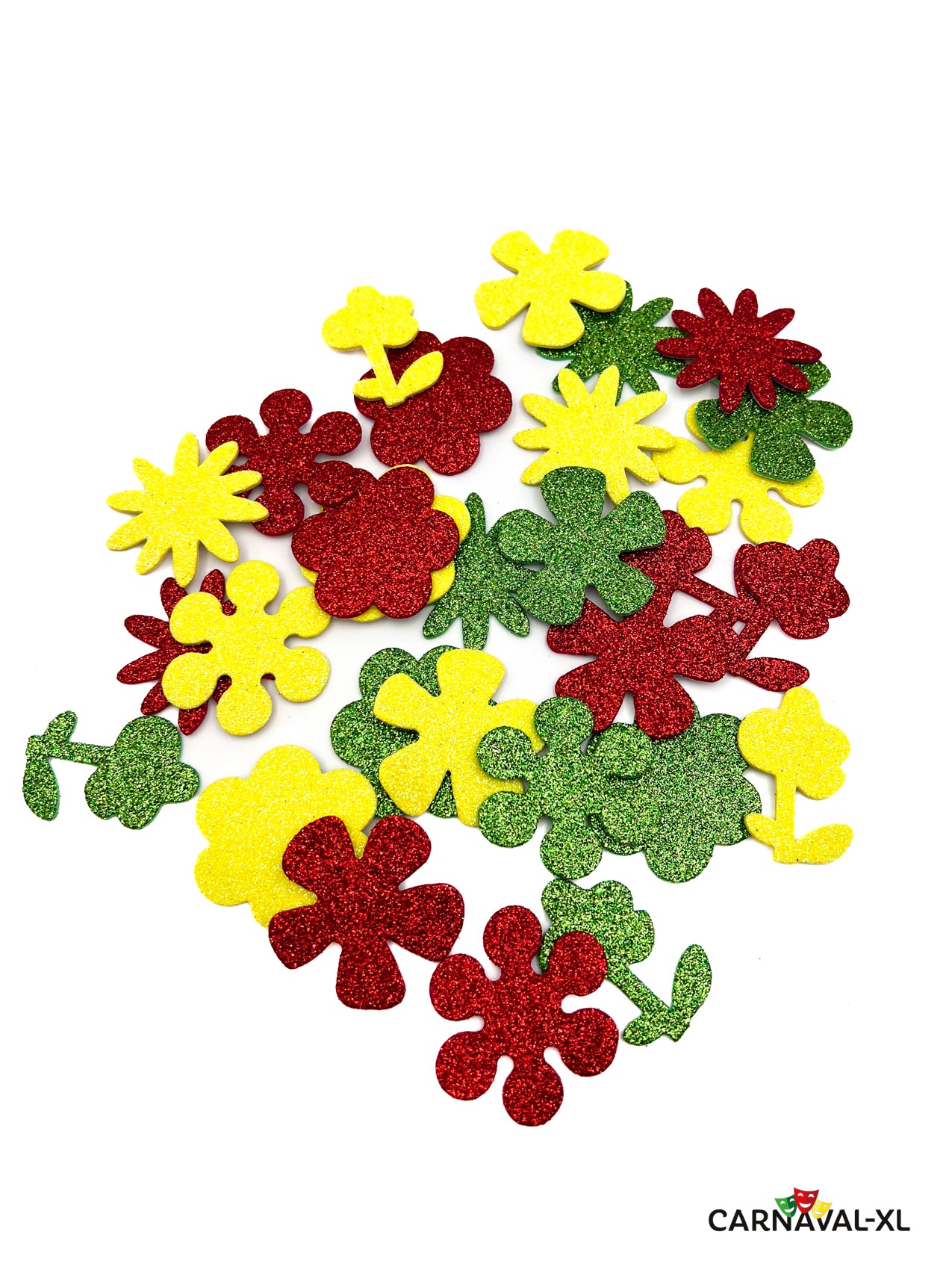 Flowermix in rood-geel-groen, 25 stuks in verschillende maten. Zelfklevend