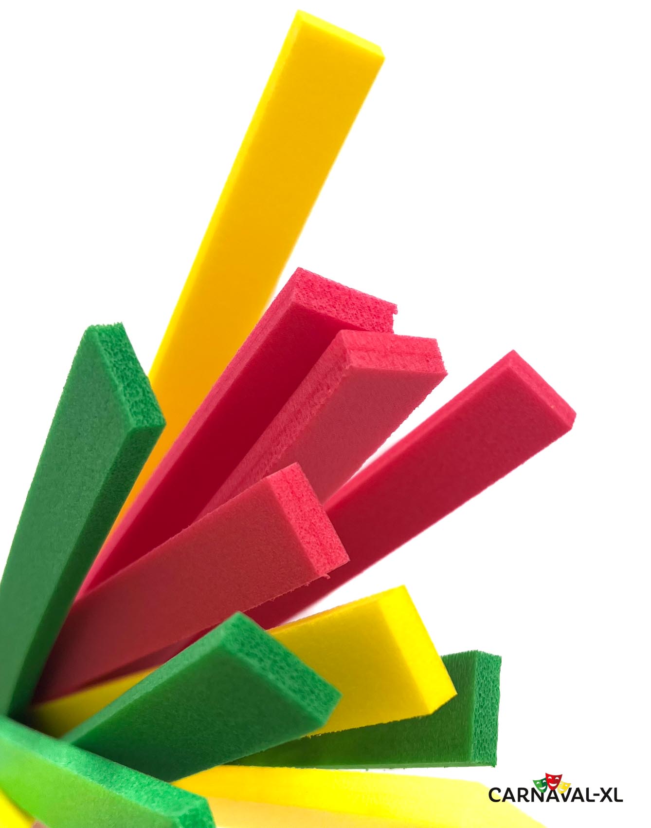 Foam stroken in rood-geel-groen foam. de set bestaat uit 12 stroken, 4 x rood, 4 x geel en 4 x groen.