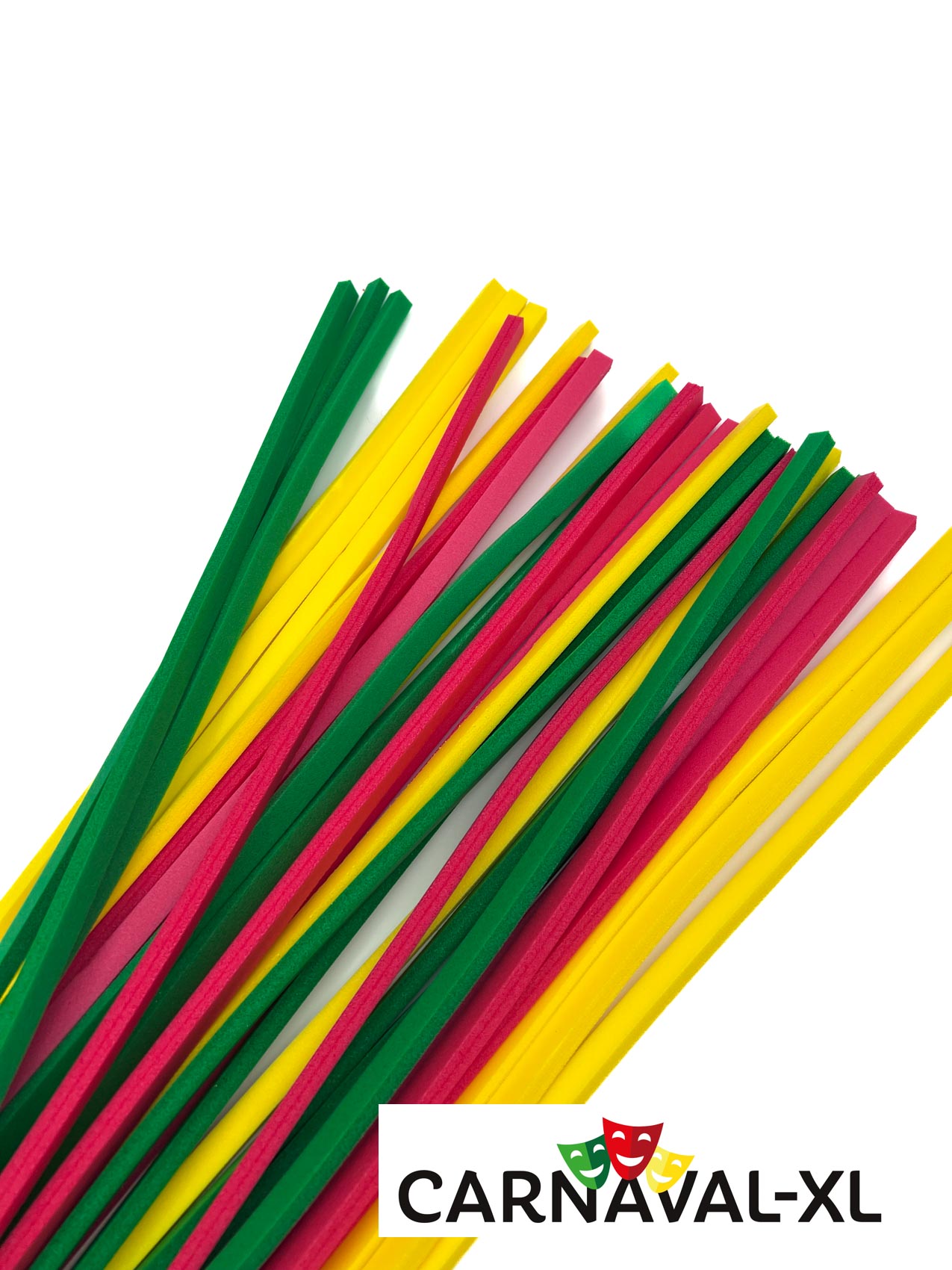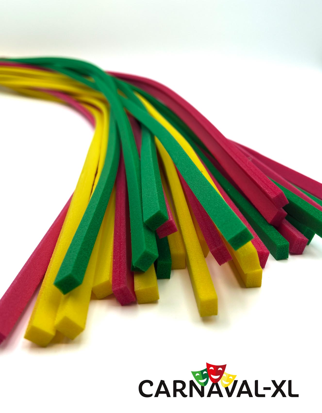 Foam stroken in rood-geel-groen foam. De bundel bestaat uit 30 stroken, 10 x rood, 10 x geel en 10 x groen.
