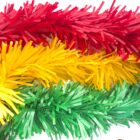 3 stuks 6 meter lange kunststof guirlande in de kleuren rood geel groen. De guirlandes zijn gemaakt van brandvertragend materiaal.