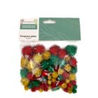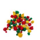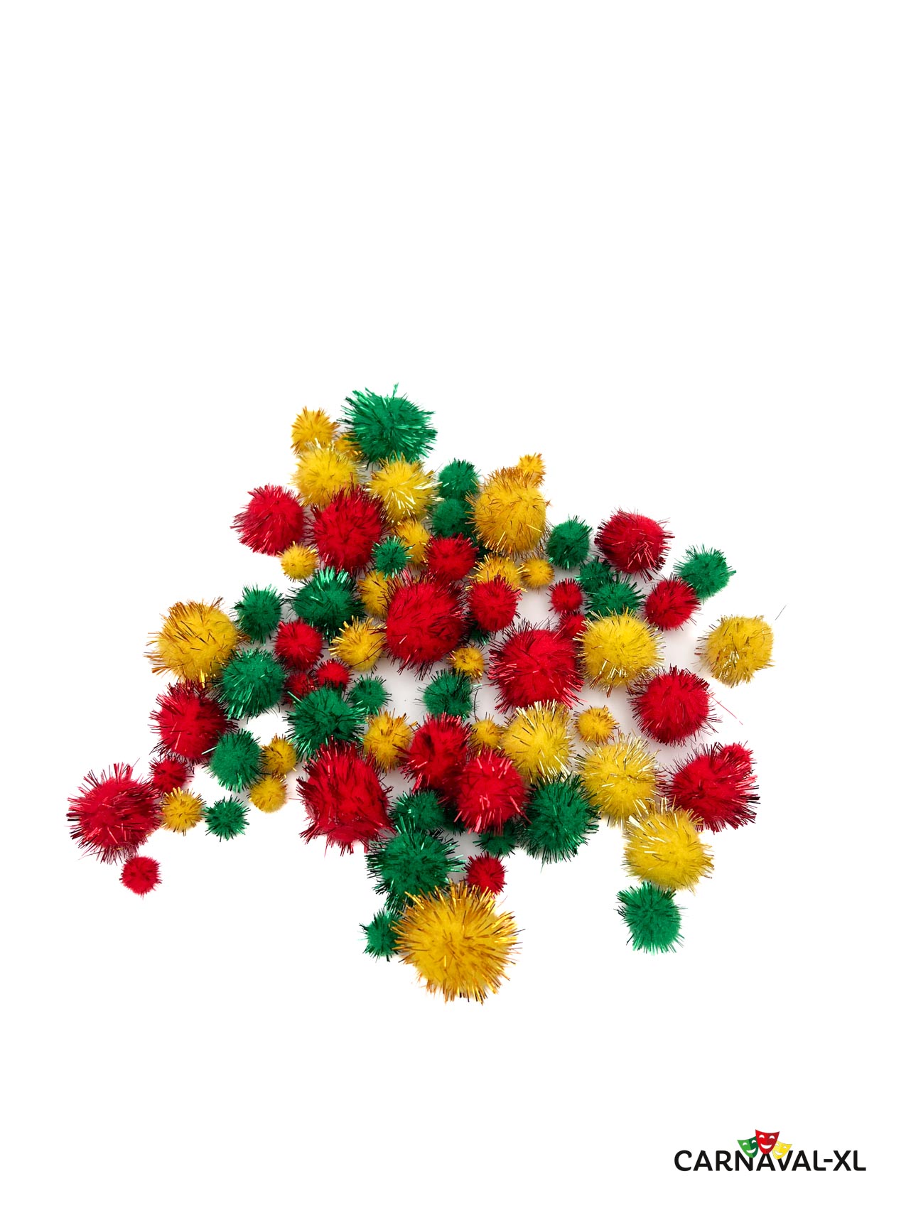 Glitterpompoms rood-geel-groen, 78 stuks in verschillende maten