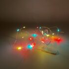 Led lichtsnoer met 20 rood-geel-groene led lampjes op een zilveren metalen draad. Uitermate geschikt als afwerking voor een feestelijke decoratie of als verlichting in uw carnavalskostuum of hoed.