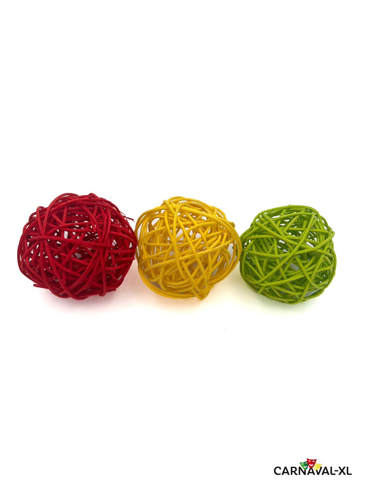 Verpakking met 9 rotan brunchballen in de kleuren rood-geel-groen, diameter 8cm