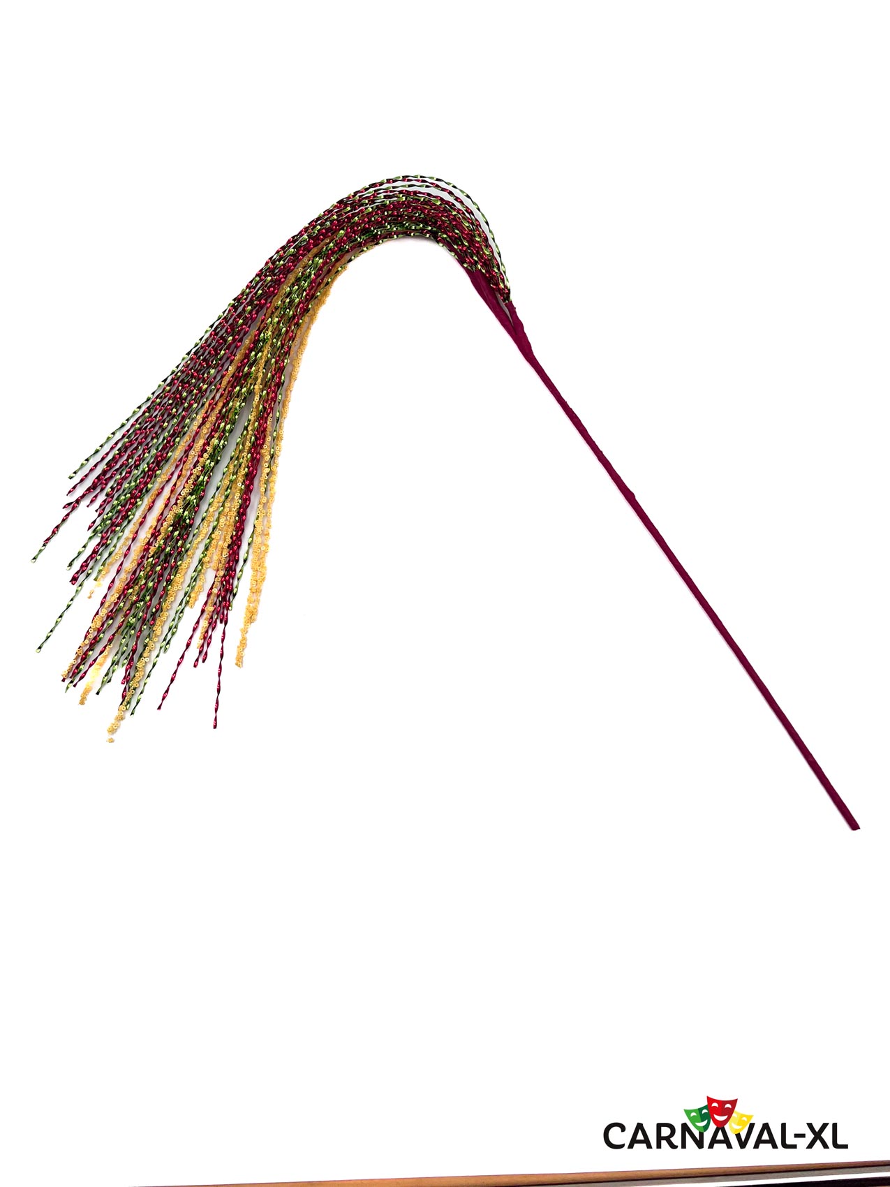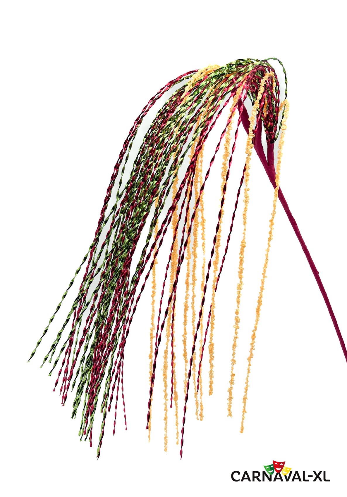 Decoratieve tak met kunststof sprieten in de kleuren rood-geel-groen.