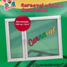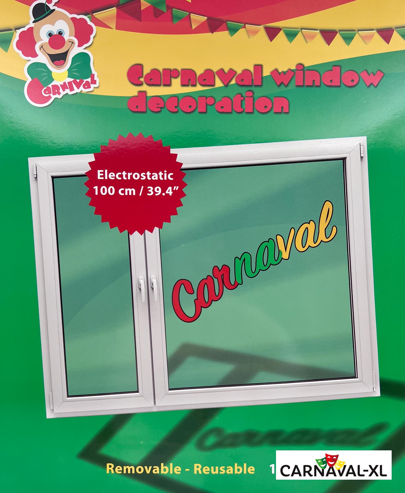 Transparante raamsticker tekst “Carnaval” zelfhechtend en herbruikbaar in de kleuren rood-geel-groen