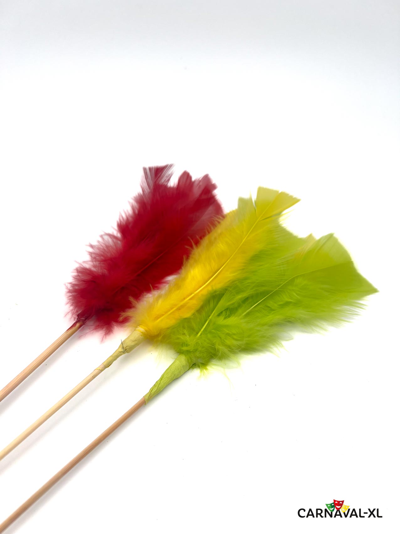 Veren op stok in de kleuren rood-geel-groen +/- 60 cm lang, verpakking van 24 stuks