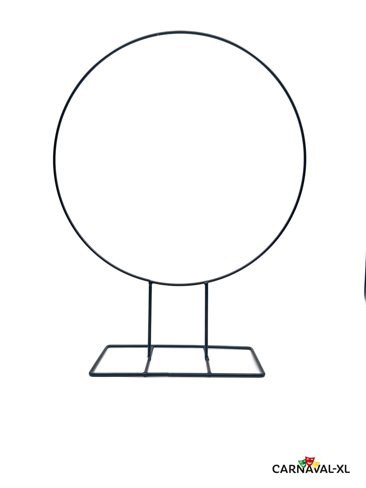Zwart metalen ring op voet. Ring diameter 38 cm, een ideale ondergrond voor uw persoonlijke creatie.